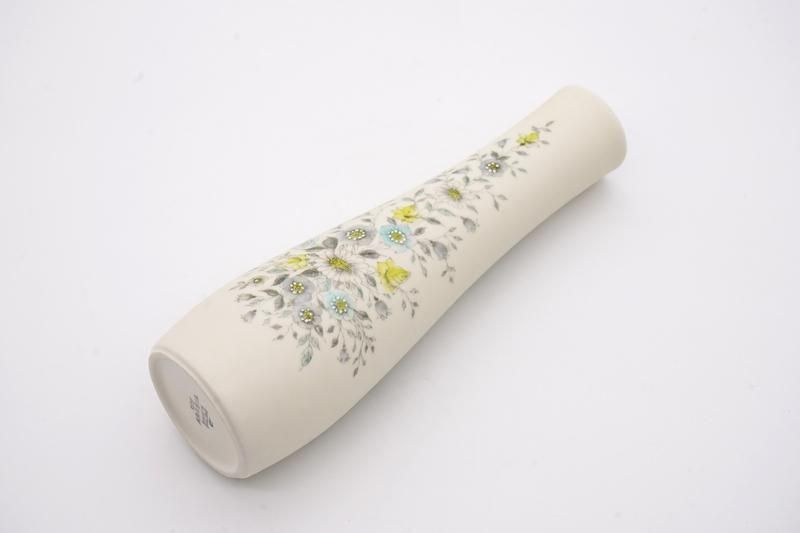 きめ細かくしっとりとした手触りのベースの滑らかなカーブのフォルムに合わせるように、繊細なラインでお花や葉がデザインされ、そこに手彩色が施された美しいシリーズです。